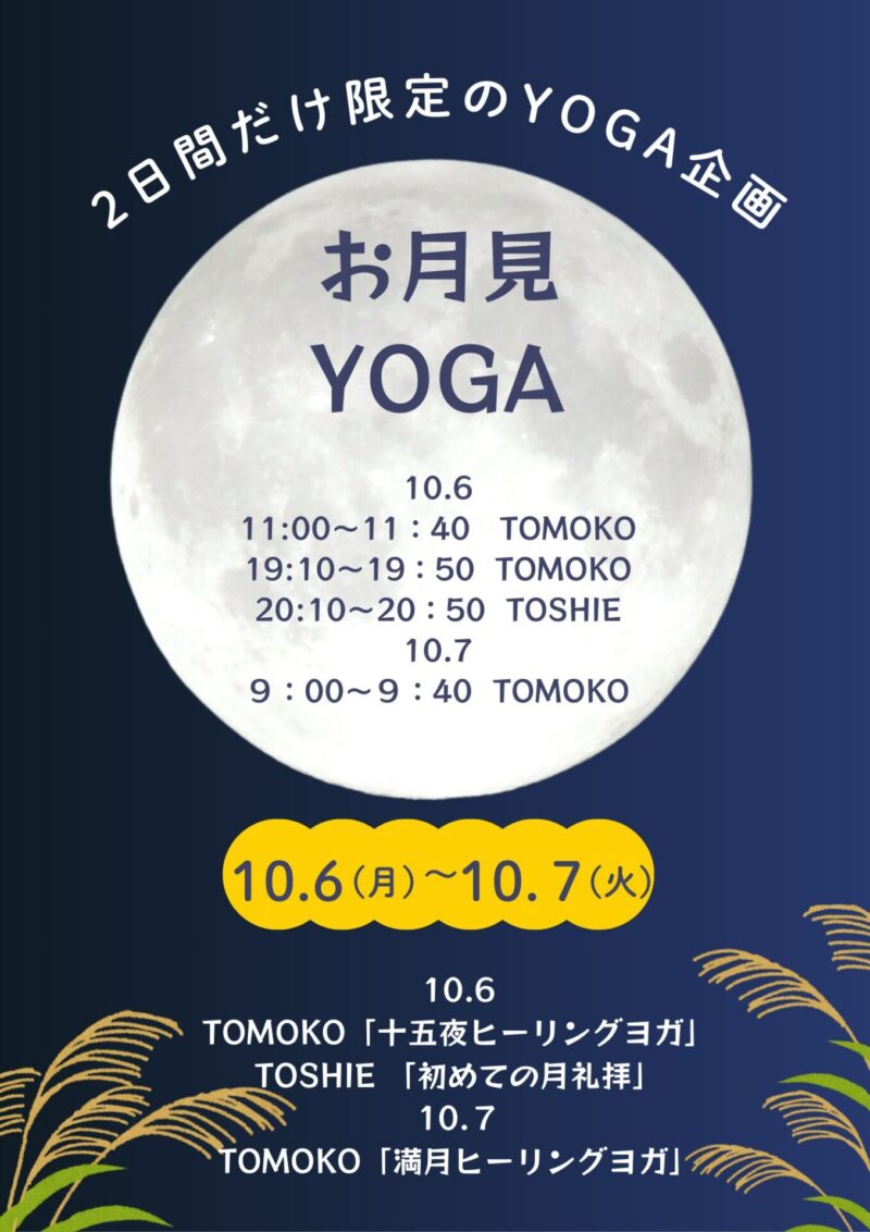 お月見YOGA お久しぶりのYOGAイベントです! 地元、稲城市若葉台のホットヨガスタジオでのイベントです。 10/6(月) 11:00〜11:40、19:10〜19:50 「十五夜ヒーリングヨガ🌝」 1 […]