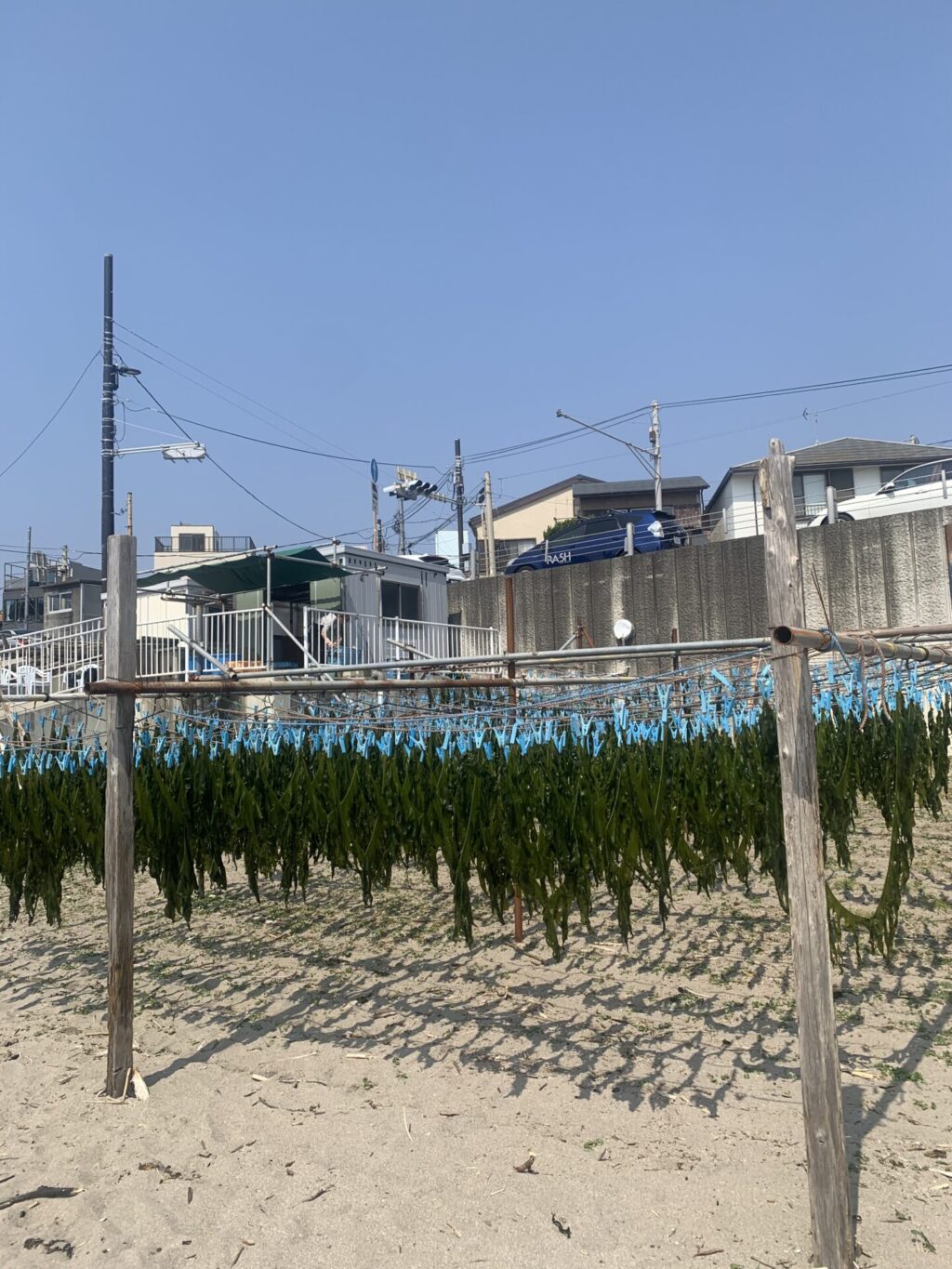 そして、良い天気なので、漁師さんがワカメを干してました。